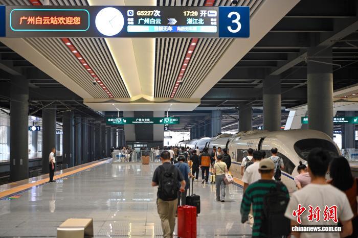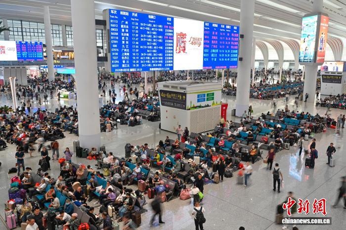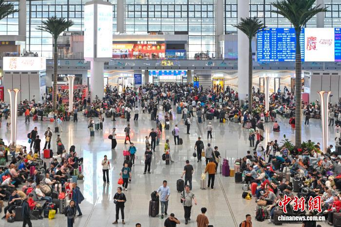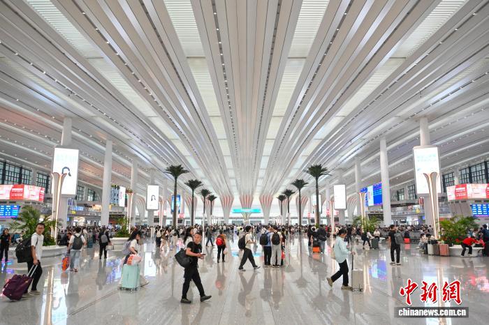 4月3日,搭客正在广州黑云站搭车出止。2026年铁道清朗假日输送自4月3日至4月7日,为期5天。邦铁广州局展望收收搭客1361万人次,共比增进11%。中新社记者 旧骥旻 摄