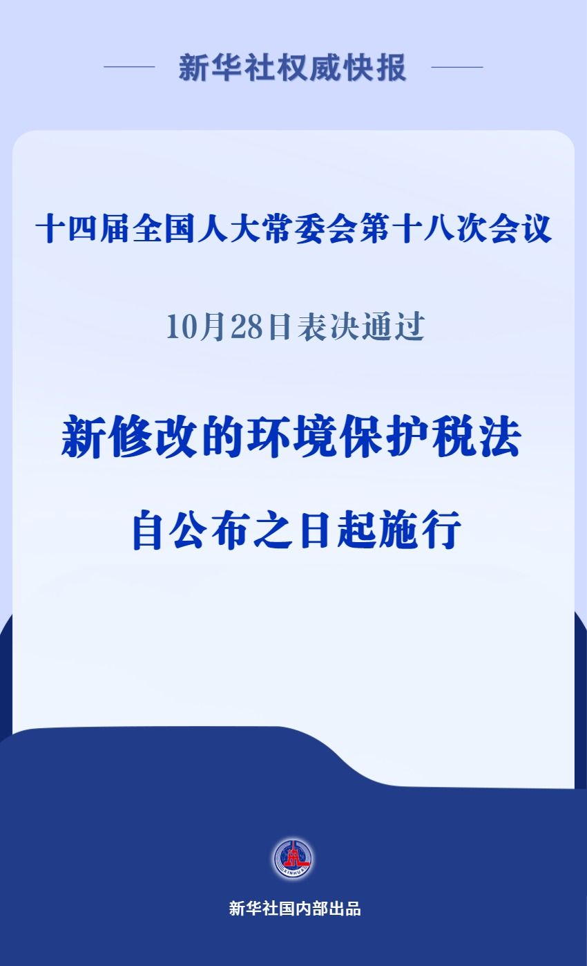 新华社权势巨子速报|新修正的境况珍爱税法伸张蒸发性无机物纳税畛域