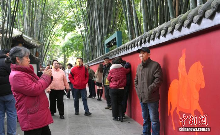 2月18日是阴历年夜岁首年月两,成皆杜甫草堂迎去秋节游览小顶峰,公众正在杜甫草堂专物馆里观光游历,悲度秋节假日。 图为乘客正在成皆杜甫草堂花径摄影纪念。中新社记者 安源 摄
