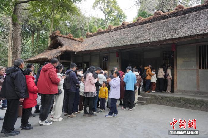 2月18日是阴历年夜岁首年月两,成皆杜甫草堂迎去秋节旅行小顶峰,公众正在杜甫草堂专物馆里观光游历,悲度秋节假日。 图为搭客正在成皆杜甫草堂茅舍观光。中新社记者 安源 摄