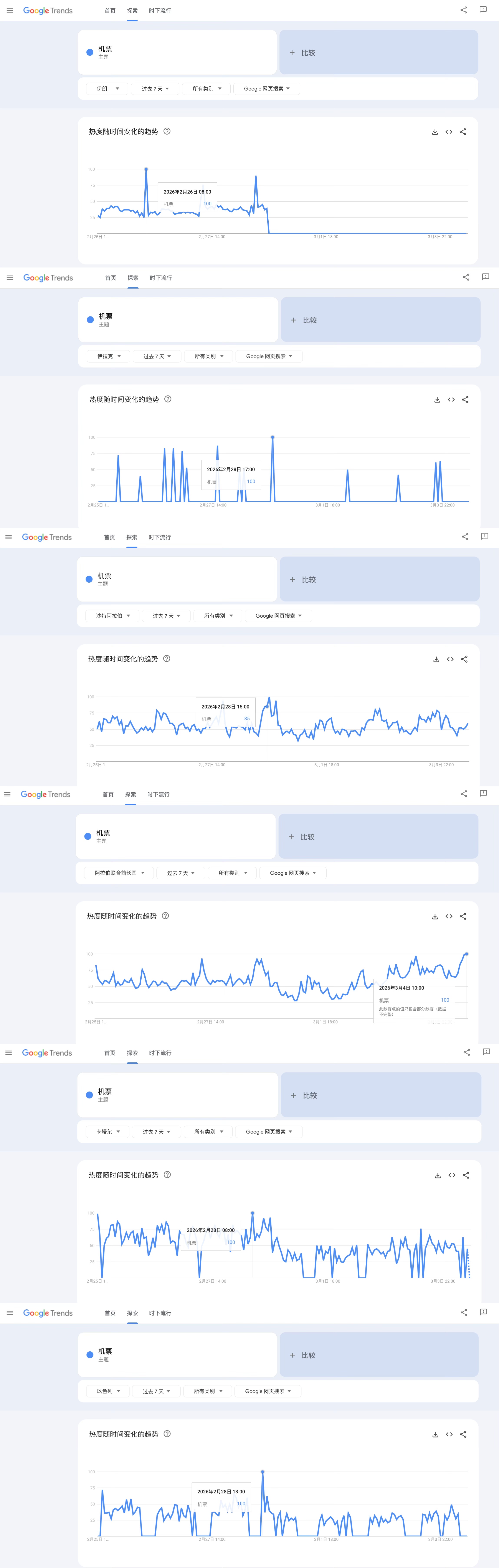 “机票”在中东多地搜索热度达峰值