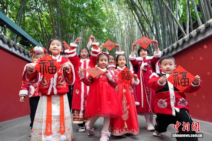 2月18日是阴历年夜岁首年月两,成皆杜甫草堂迎去秋节游览小顶峰,公众正在杜甫草堂专物馆里观光游历,悲度秋节假日。 图为小同伙经历木奇戏演出。中新社记者 安源 摄